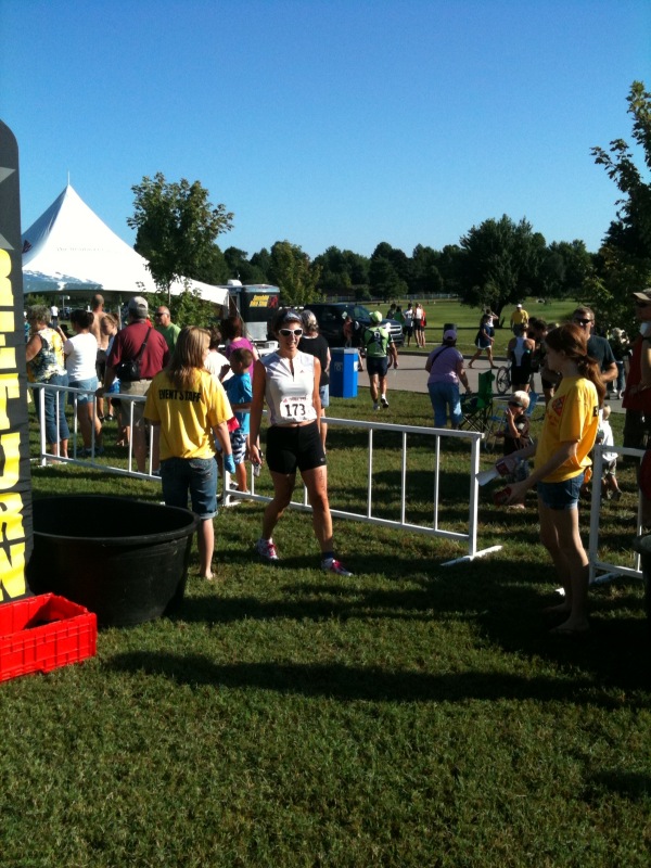 The bike course was only 12 miles but included some steep climbs and rolling hills. We pushed hard and finished strong. After dismounting the bike, we changed into running shoes and took off on the run course.
